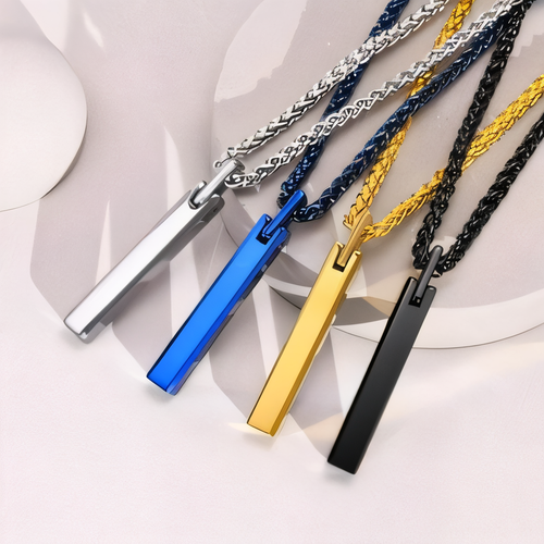 Minimalist Vertical Men’s Tungsten Steel Bar Pendant Necklace | High Polished Trendy Jewelry Gift